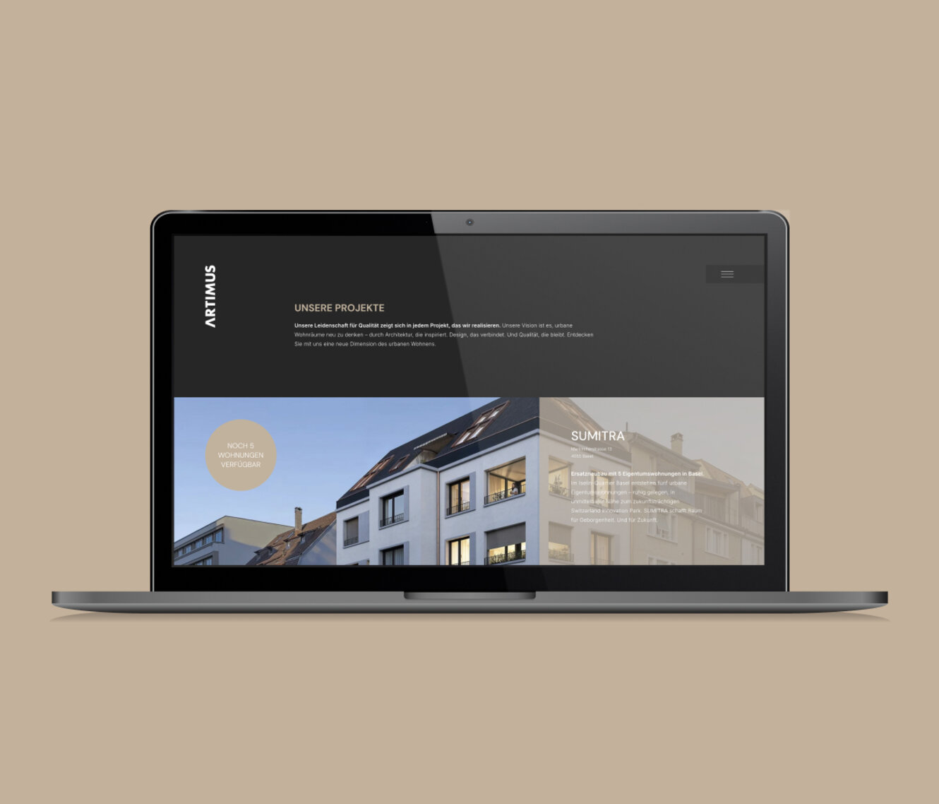 Für ARTIMUS, einen Baseler Projektentwickler mit klarer Vision, haben wir einen digitalen Auftritt gestaltet, der die Essenz der Philosophie spürbar macht: Wohnen ist mehr als Raum – es ist Lebensgefühl.